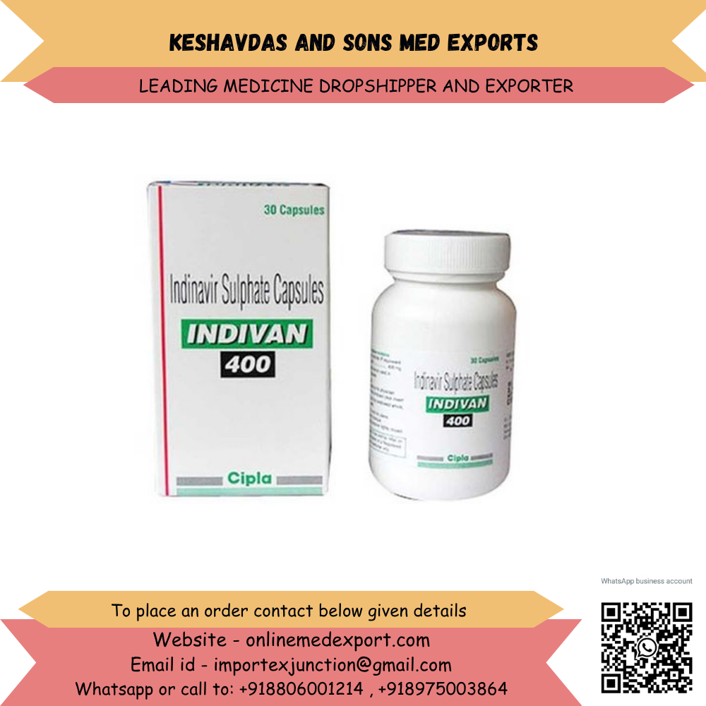 Keshavdas and Sons Med Exports is a trusted pharmaceutical exporter from India to the UK, supplying 400 mg Indinavir Capsules with premium quality, competitive pricing, and fast international delivery. We specialize in bulk supply, wholesale orders, and dropshipping services for global clients.