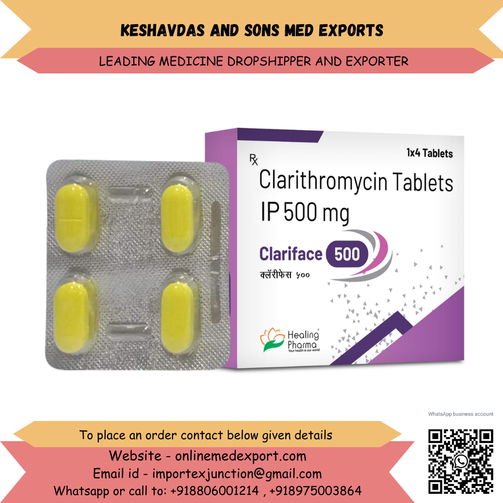 If you are looking for a reliable exporter of Clarithromycin 500 mg from India, contact Keshavdas and Sons Med Exports for product availability, pricing, and international shipping details.