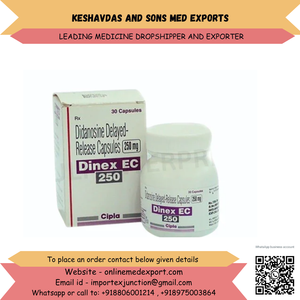 Keshavdas and Sons Med Exports is a trusted pharmaceutical exporter from India to the UK, offering Didanosine 250 mg Tablets with high-quality assurance, competitive wholesale pricing, and fast international delivery. We specialize in bulk supply, repeat orders, and global dropshipping services.