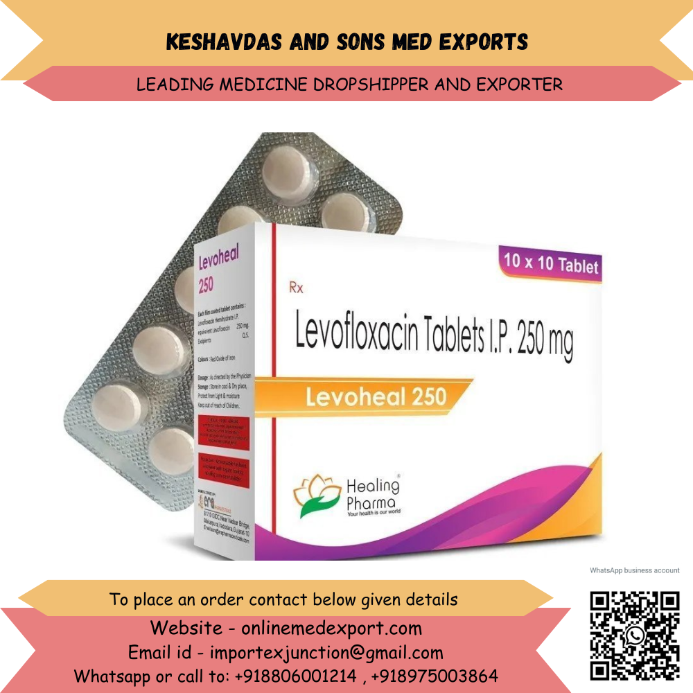Keshavdas and Sons Med Exports is a trusted pharmaceutical exporter from India, supplying Levofloxacin 250 mg tablets with high quality, competitive pricing, and fast international delivery. We work with certified manufacturers to ensure safe, effective, and globally compliant medicines.
