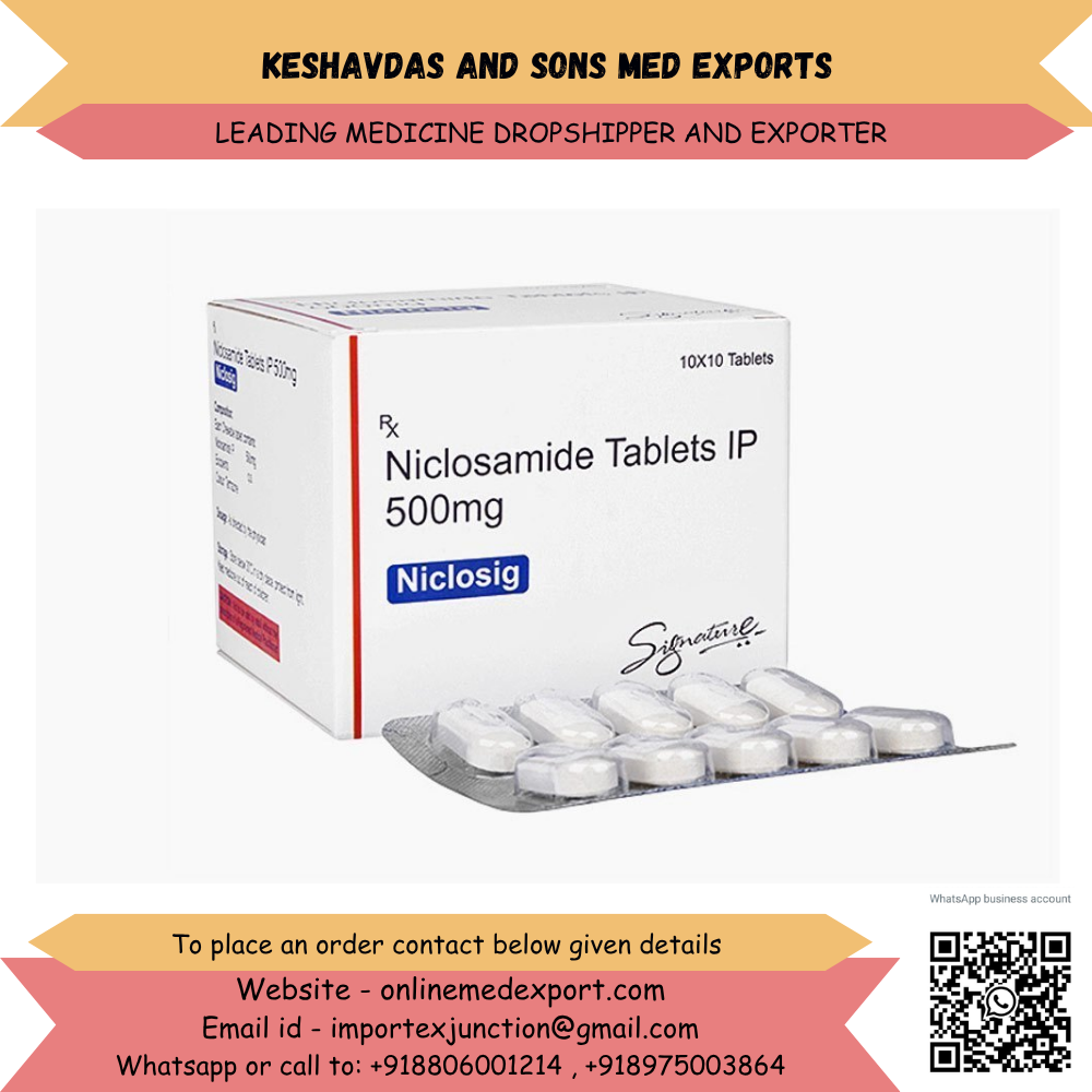 We supply WHO-GMP certified Niclosamide tablets sourced from leading Indian manufacturers, ensuring quality, consistency, and competitive pricing.