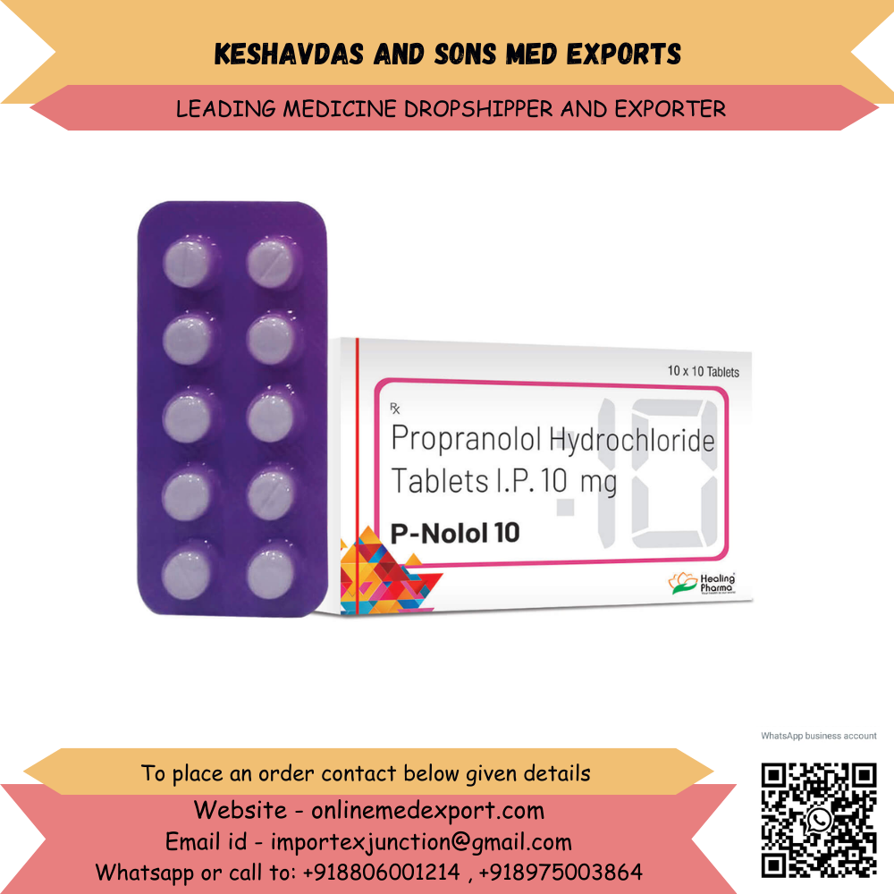 If you are looking for a reliable exporter of Propranolol 10 mg from India, contact Keshavdas and Sons Med Exports for product availability, pricing, and international shipping details.