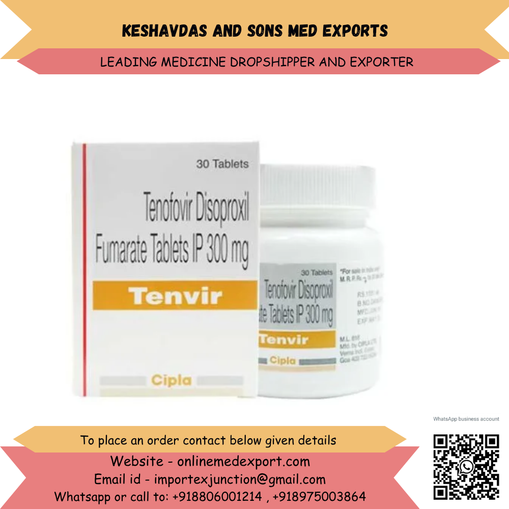 Keshavdas and Sons Med Exports is a reliable pharmaceutical exporter from India to the UK, offering Tenofovir Disoproxil Fumarate 300 mg tablets with high-quality standards, competitive wholesale pricing, and fast international delivery. We specialize in bulk supply, repeat clients, and global dropshipping services.